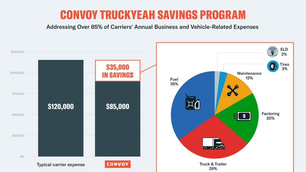 Convoy’s new TruckYeah Savings program offers participating carriers savings of up to $35,000 on certain expenses.