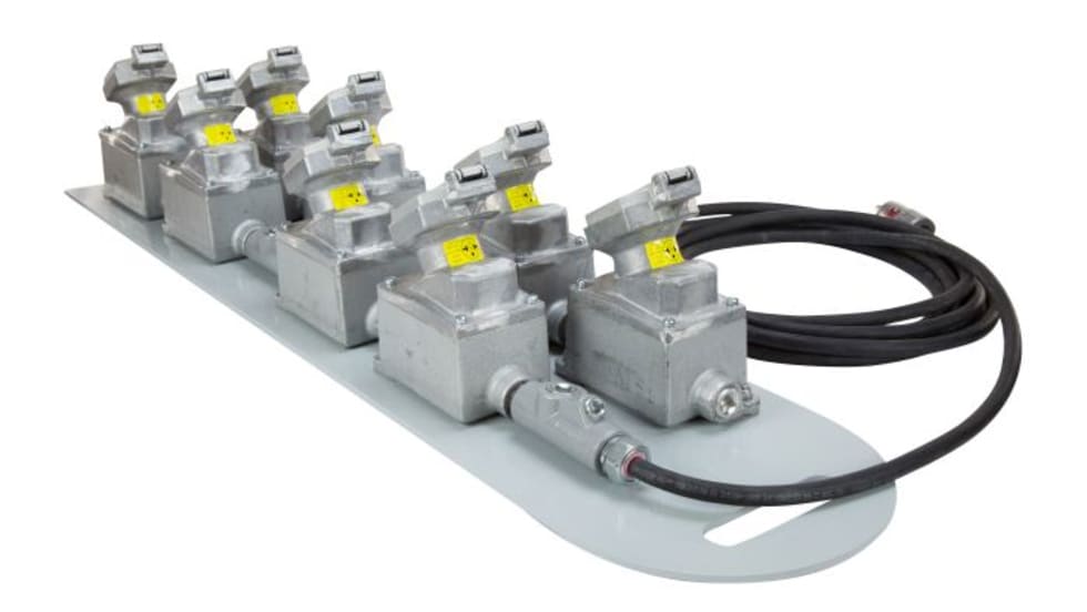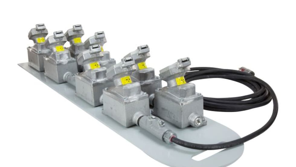 Larson Electronics’ EPEXC-8X-12.4-25 heavy-duty extension cord equipped with eight twist-lock receptacles is designed to provide a secure connection for explosion-proof equipment in hazardous locations.