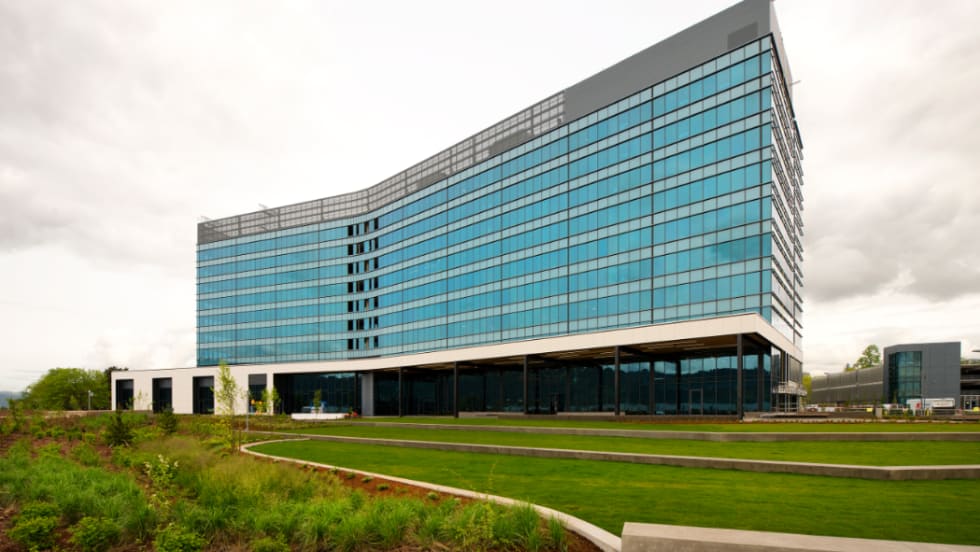 Daimler Trucks North America opened its nine-story headquarters building on its corporate campus in north Portland, Ore.