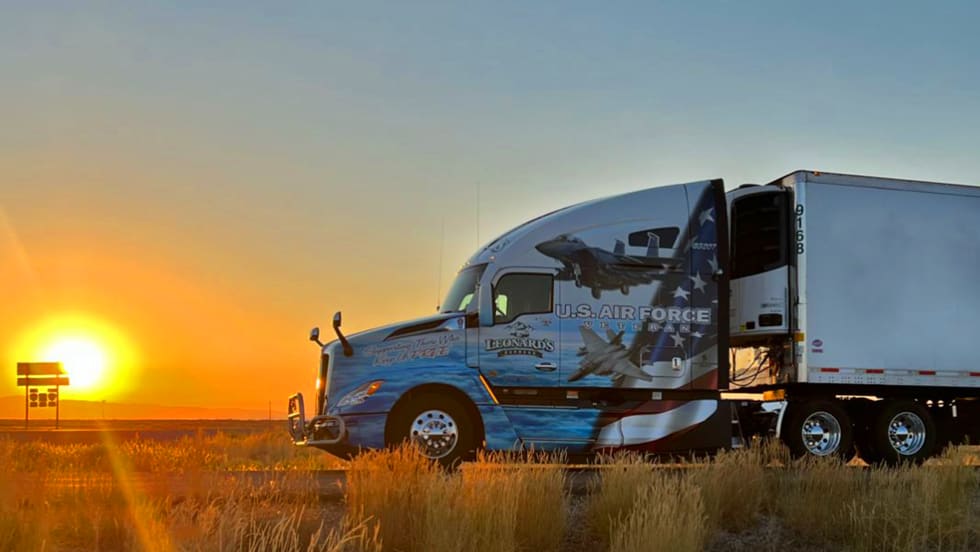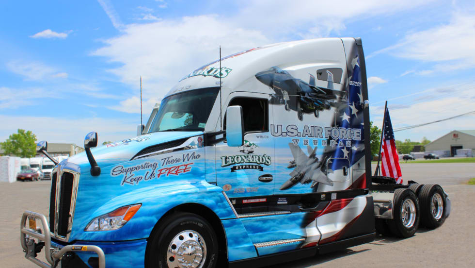 Leonard's Express has created a small fleet of specially wrapped trucks to honor U.S. veterans and raise awareness about cancer and Parkinson's disease.
