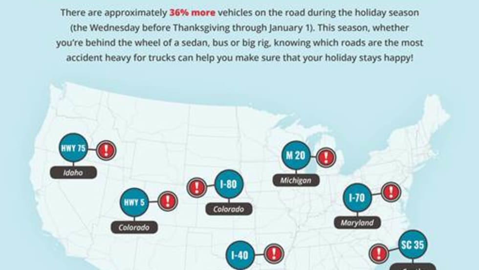 Fleet management technology provider Zonar has created a graphic of the top 10 most dangerous roads in the U.S. for truck drivers, based on information from the U.S. Department of Transportation.
