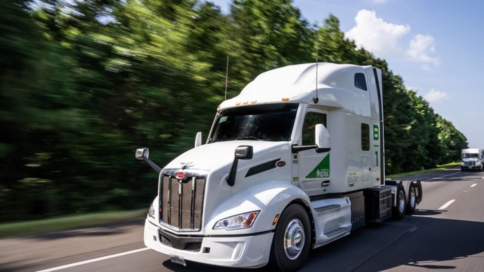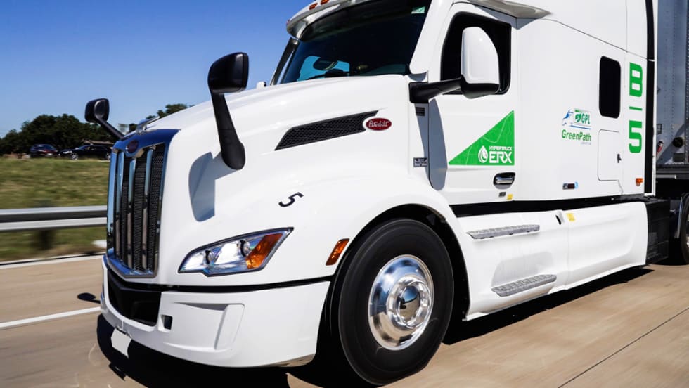 Hyliion’s ERX Hypertruck has a fully battery-electric drivetrain, but its near-zero-emissions natural gas range extender engine can take the truck up to 1,000 miles away from home.
