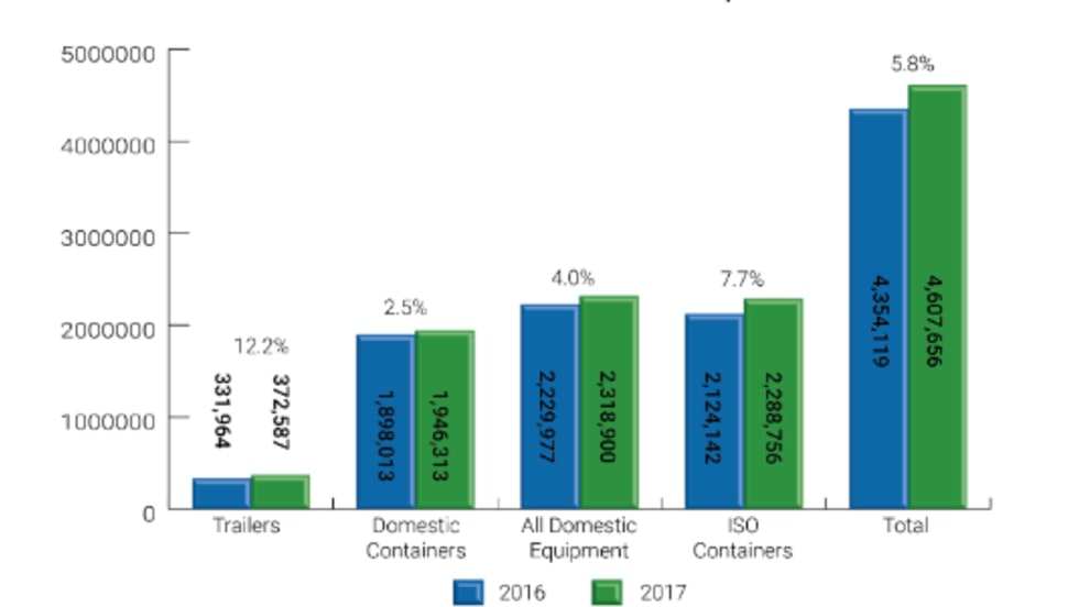 Intermodal freight volumes posted a strong fourth quarter that saw a growth rate of 5.8% year over year, according to an Intermodal Association of North America report.