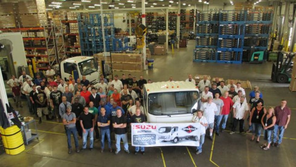 Isuzu Commercial Truck of America, Inc., distributor of low-cab-forward trucks, announced that the 30,000th gasoline-powered Isuzu N-Series truck has been produced at the Spartan Motors, Inc. facility in Charlotte, Mich.