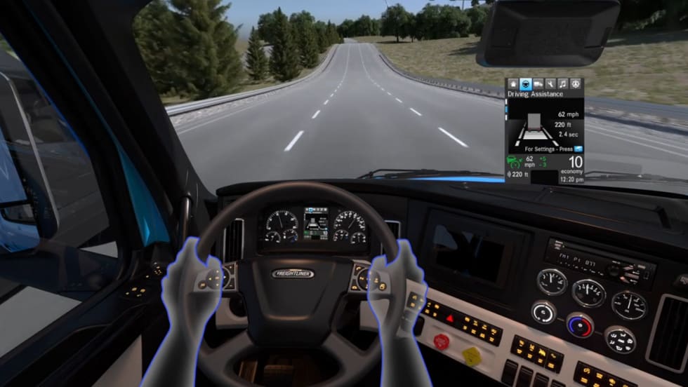 Daimler’s Detroit Assurance 5.0 includes an optional lane keep assist feature that helps drivers keep from drifting out of the lane or off the road. Using a camera-based setup, the system will self-steer the truck keeping it between the lines and can make minor corrections for crosswinds and vehicle alignment.