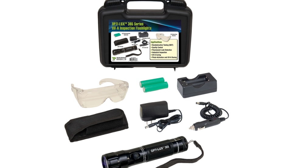 The TP-8616 Opti-Pro/EZ-Shot kit from Tracerline is an ultraviolet light, LED leak detection kit for pinpointing leaks in an A/C system.