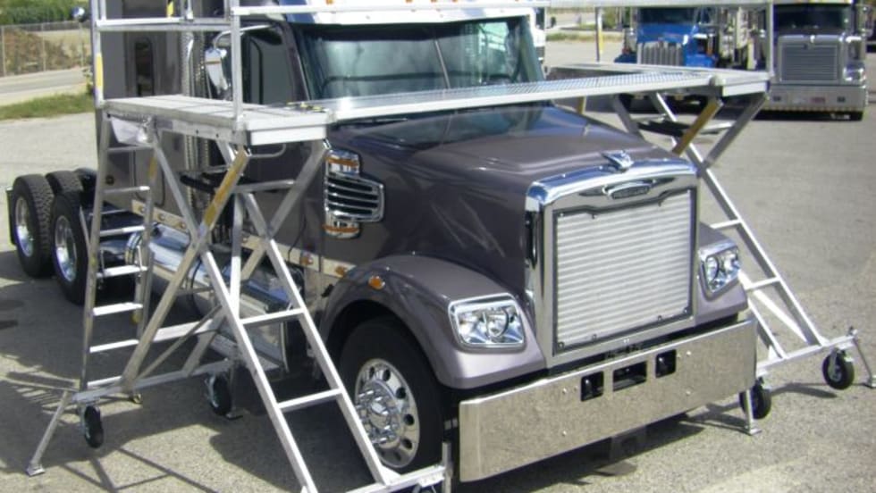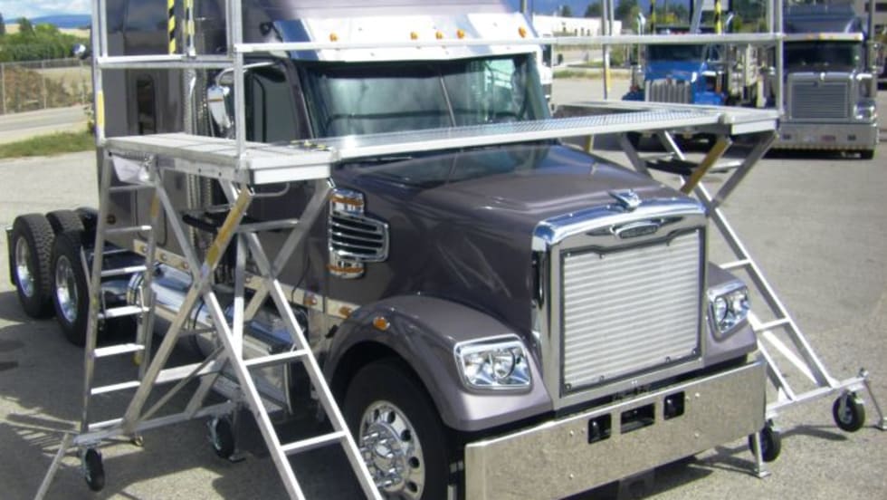Scissor Decks are spring-assisted manual lift platforms designed for maintenance access on large trucks.
