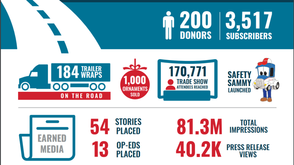 Trucking Moves America Forward has reached over a hundred million people through a combination of billboards, trailer wraps, industry events, and media appearances, the industry organization recently announced.