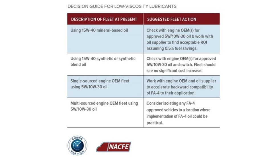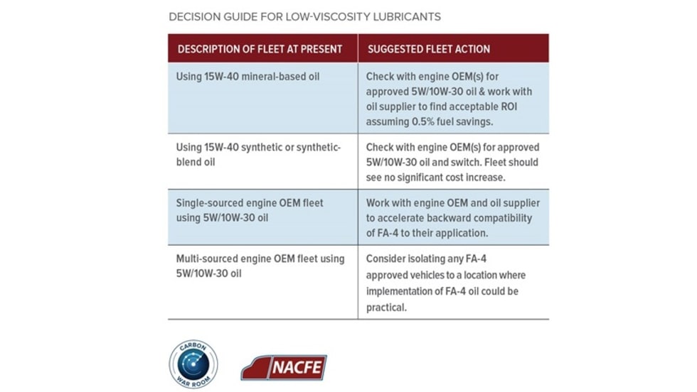 A new report concludes that most fleets should look at adopting lower-viscosity engine oils for fuel savings.