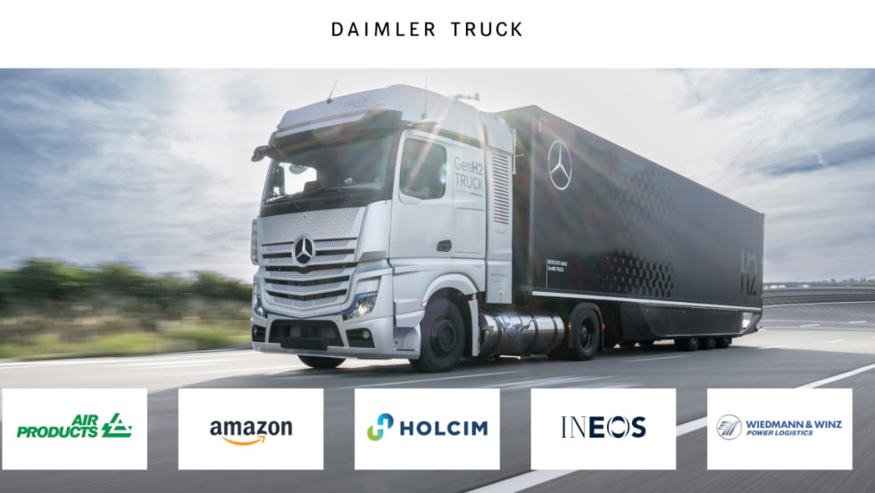 Daimler Truck has begun initial customer trials with five Mercedes-Benz GenH2 Trucks in Europe with Air Products, Amazon, Holcim, INEOS and Wiedmann & Winz.