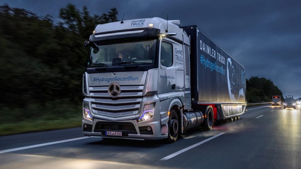 A prototype Mercedes-Benz GenH2 fuel-cell-electric truck covered a distance of 1,047 km between Woerth am Rhein and Berlin, Germany, on a single tank of hydrogen.