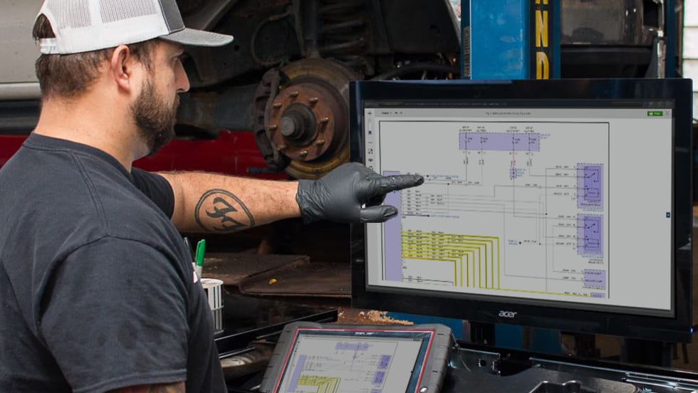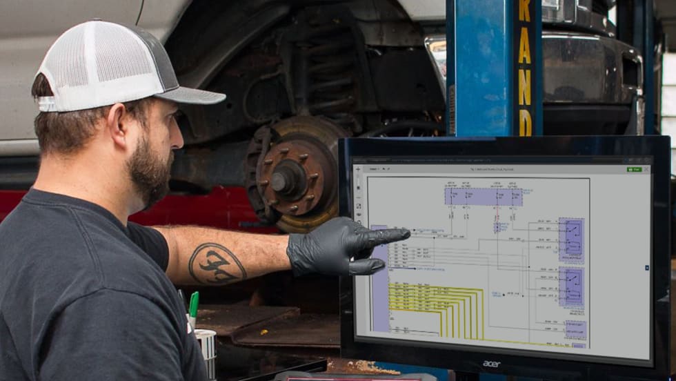 A diagram-to-diagram navigation feature within Mitchell 1's TruckSeries medium- and heavy-truck repair program allows users to navigate from one wiring diagram to another without exiting the initial view.