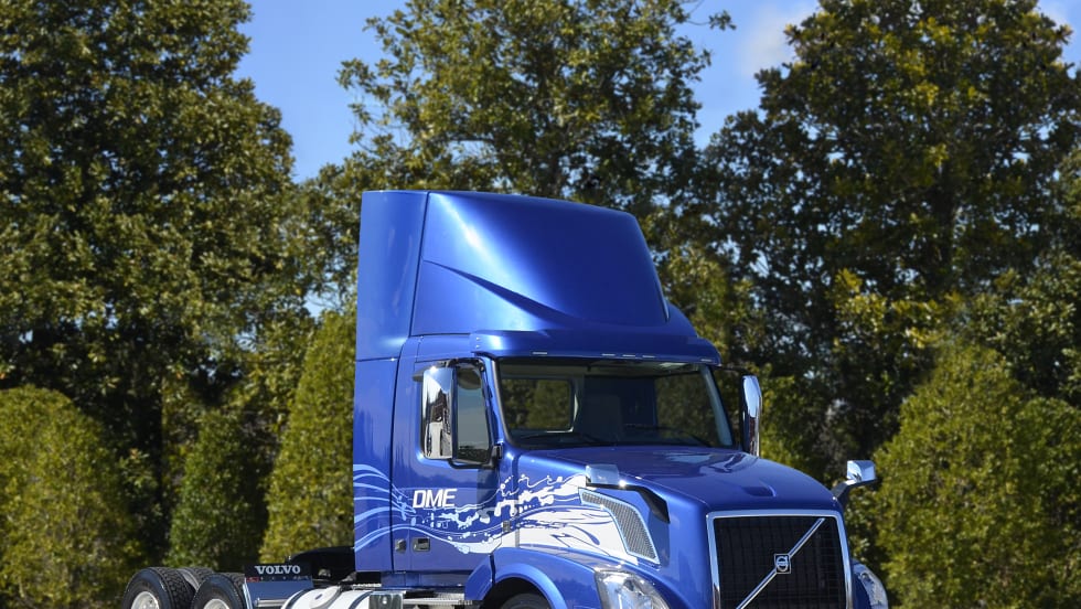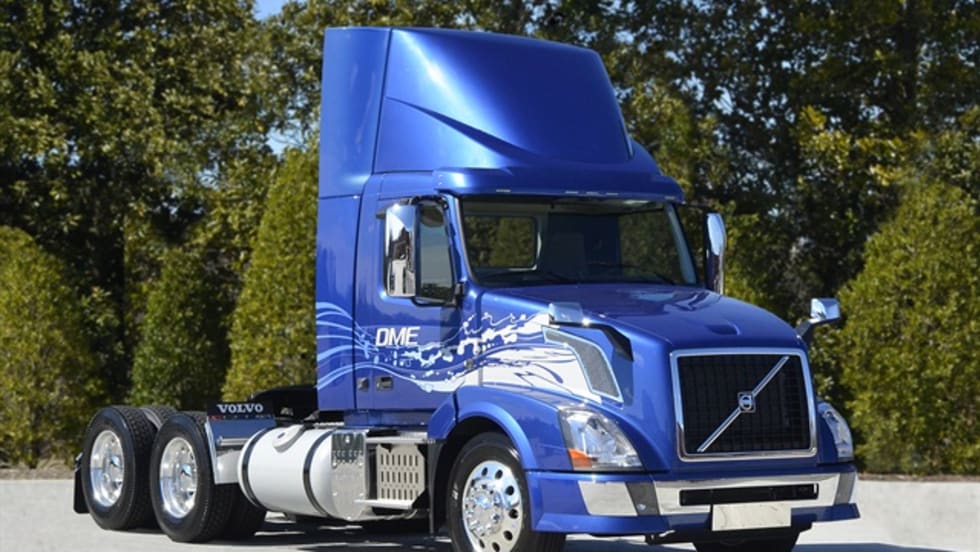 Volvo Trucks is testing dimethyl ether in a pair of Volvo VNL 300 trucks with D13 DME engines with partners Oberon Fuels and Martin Energy Services.