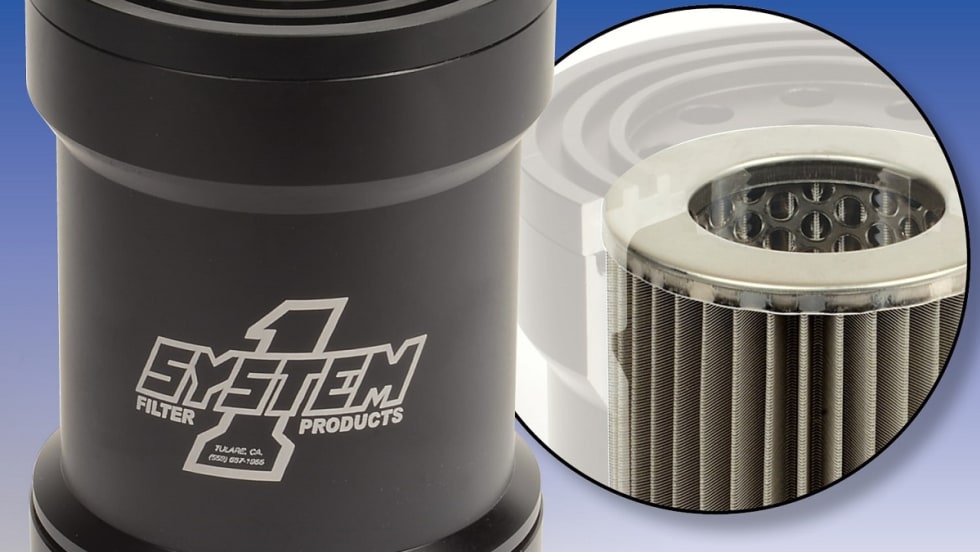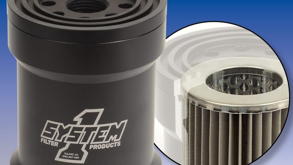 System 1 has introduced a new canister-style oil filter with a removable stainless steel mesh element.