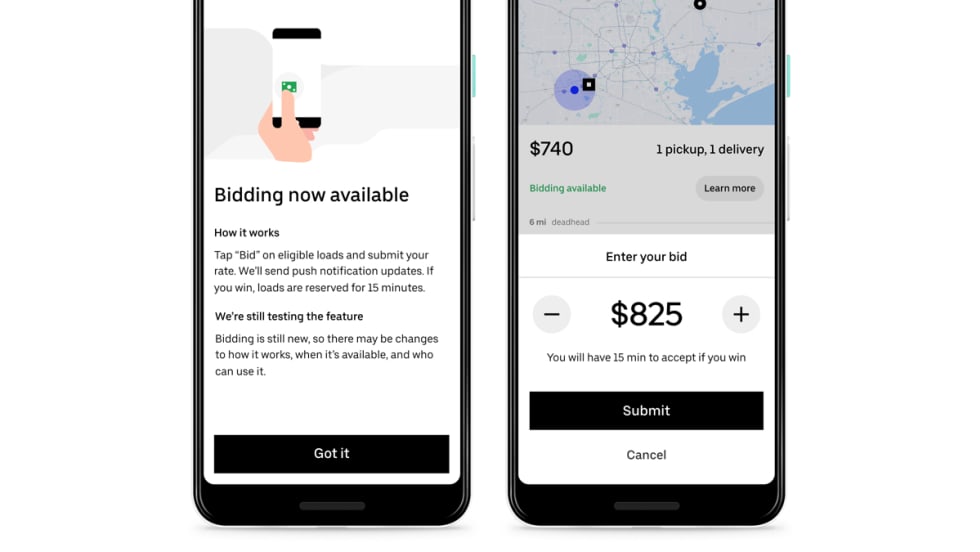 Uber Freight's new bidding feature in its app offers carriers and drivers increased flexibility and control by allowing them to bid and receive feedback on select loads directly.