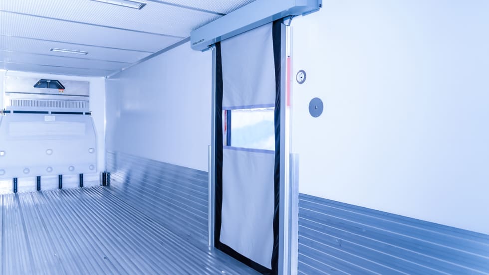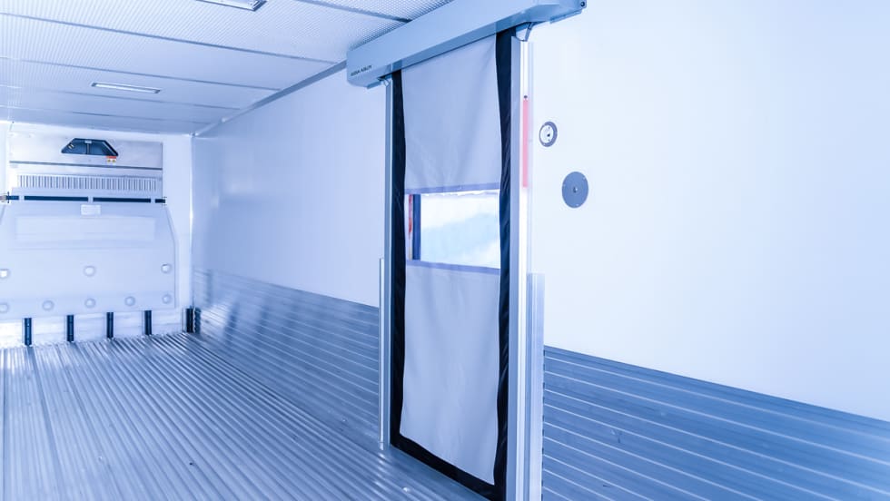 Assa Abloy Entrance Systems' MD2000 automated interior door saves fuel by reducing how long trailer doors are open during temperature-controlled deliveries.
