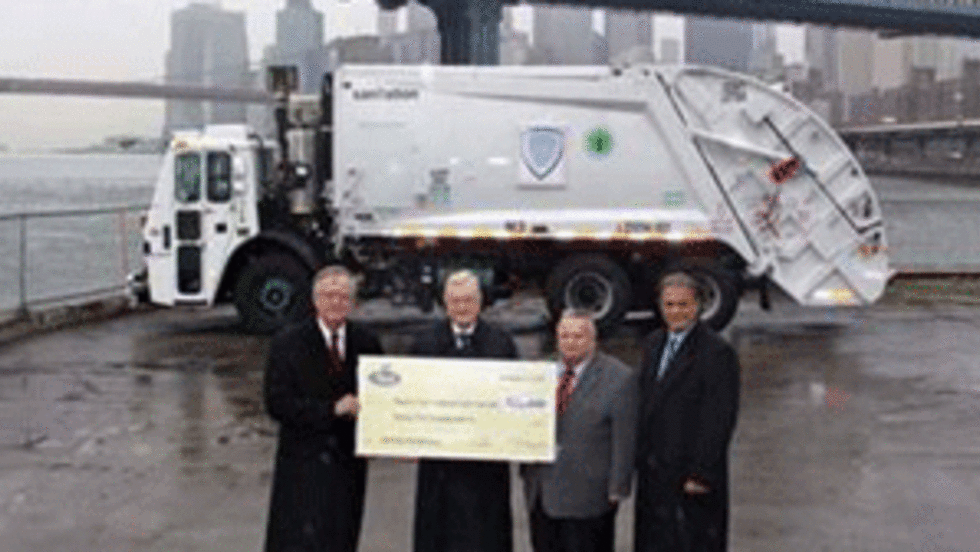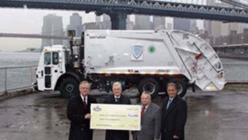 Mack Trucks presented a $25,000 check to New York City Commissioner of Sanitation John J. Doherty to support relief efforts following Hurricane Sandy.