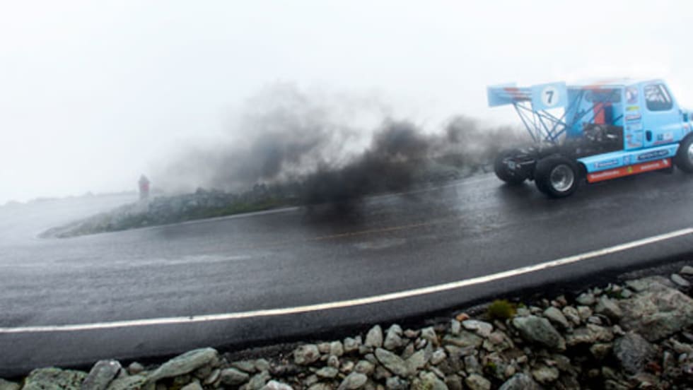 Read More →Here's a fun bit of video for your summer vacation watching pleasure: Mike Ryan taking his modified Freightliner race truck up narrow, winding, paved and dirt roads in the 2011 "Climb to the Clouds" Mt. Washington Hillclimb, one of America's oldest auto races