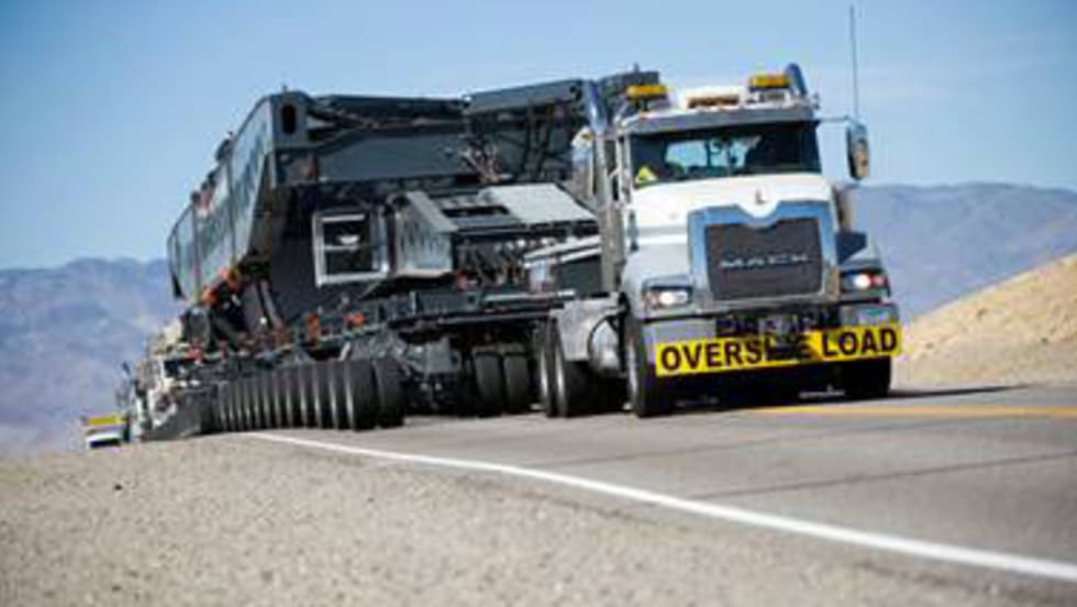 Read More →How do you move a nearly million-pound load? Design your own trailer, with 192 wheels, and big power from Mack trucks -- three of them
