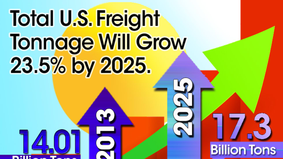Freight tonnage will grow 23.5% from 2013 to 2025 and freight revenues will jump 72%, according to the American Trucking Associations' U.S. Freight Transportation Forecast to 2025, a look at the future of freight. It predicts continued growth for both the trucking industry and freight economy overall.