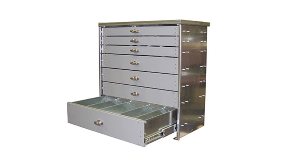 The American Eagle Heavy-Duty Steel drawer system is designed to provide a solid, durable platform for carrying tools and components.
