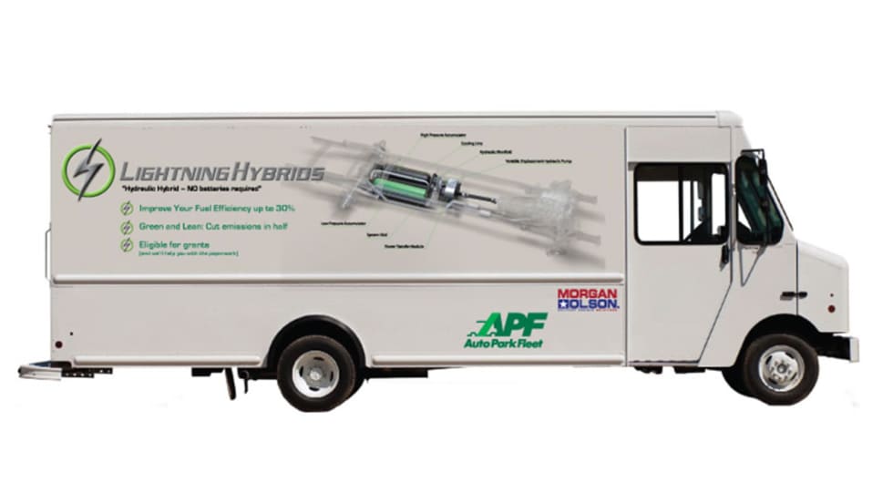 Lightning Hybrids, which makes hydraulic hybrid systems for medium- and heavy-duty trucks and buses, is debuting the use of its emission-reducing brake regeneration technology on a walk-in van.