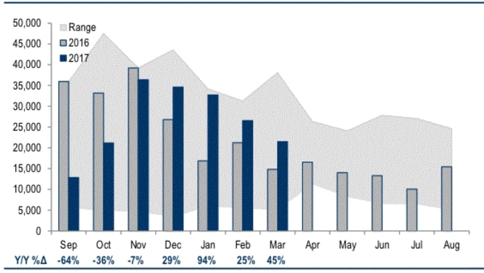 Despite falling compared to the previous month, net trailer orders in March remained robust, posting significant gains compared to last year.