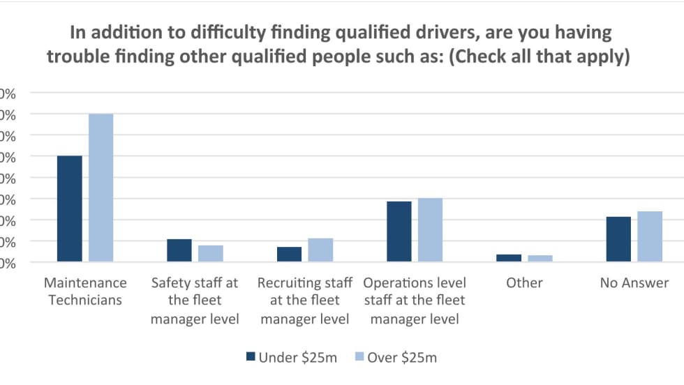 The most recent Transport Capital Partners Survey reveals carriers experiencing problems finding not only qualified drivers, but also other qualified employees such as technicians, operations staff and fleet managers..