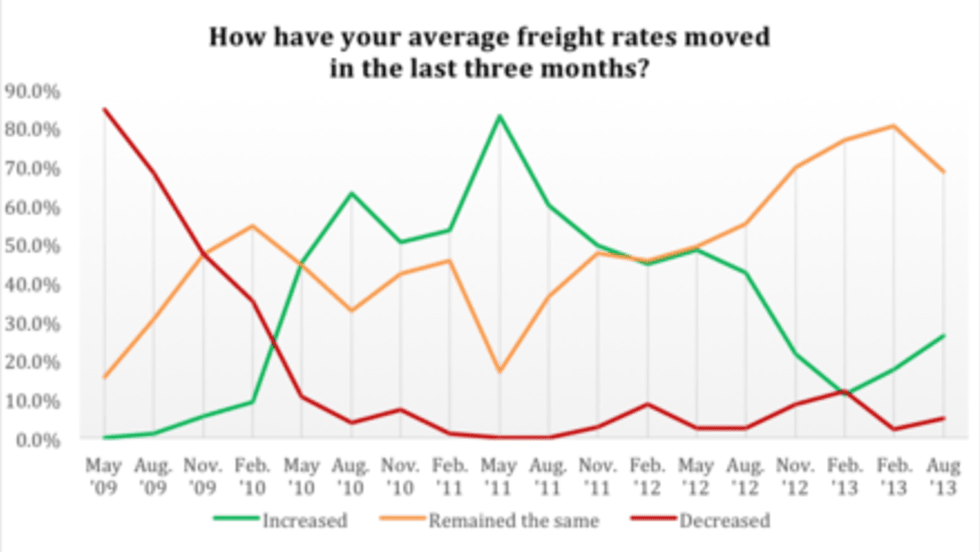 In the second-quarter survey, 65% of carriers indicated they plan to increase capacity. This presents no notable change from first-quarter 2013 and second-quarter 2012 percentages.