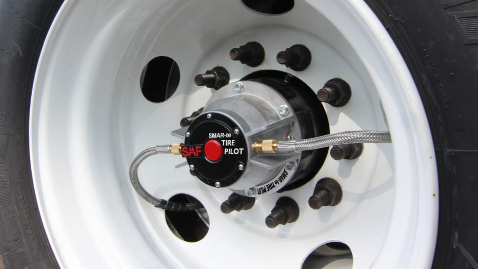 SAF-Holland's new tire pressure management system uses suspension air pressure data to accurately adjust pressures based on actual trailer axle loads.