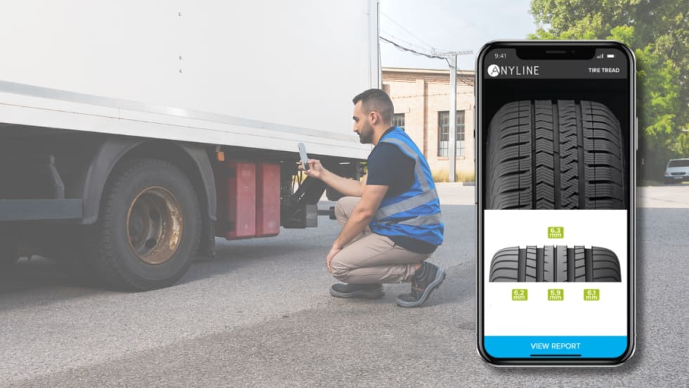 Anyline’s Commercial Tire Tread Scanner uses artificial intelligence with any camera-enabled smartphone or mobile device to measure truck tire information such as tread depth.
