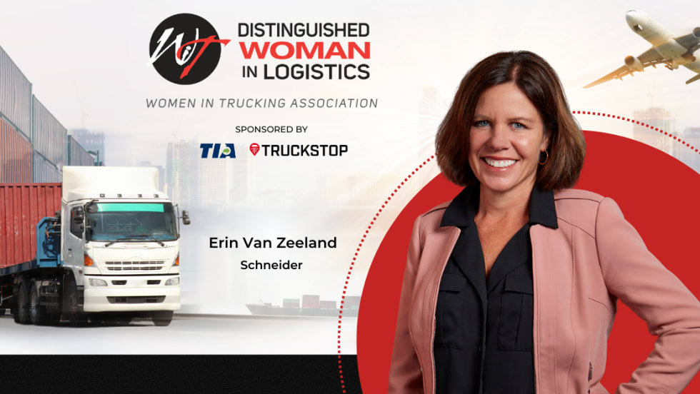 Schneider's Erin Van Zeeland was recognized by the ninth annual 2023 Distinguished Woman in Logistics Award from Women in Trucking.