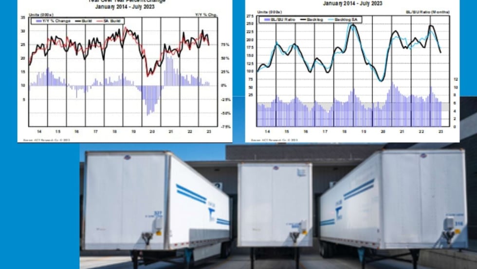 ACT Research analysts expect higher trailer build numbers in 2023 and 2024, but there are clouds, while Class 8 2023 build backlogs will continue to decline, as the rebalancing of the freight market is being drawn out.