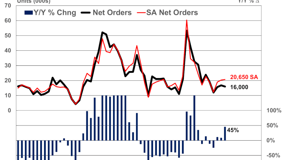 Although FTR's trucking conditions index improved to essentially neutral in August, U.S. trucking activity as measured by tonnage dropped in September to the lowest in three months, and North American Class 8 net orders in September were the weakest since 2019.