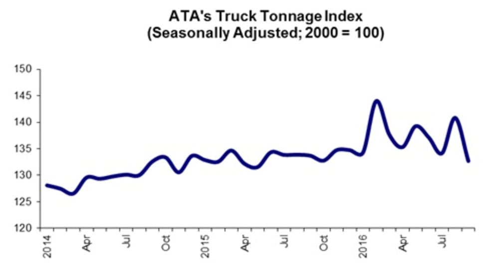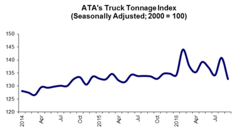 The American Trucking Associations' advanced seasonal adjusted For-Hire Truck Tonnage Index shrank 5.8% in September, erasing the 5% increase of the month before.