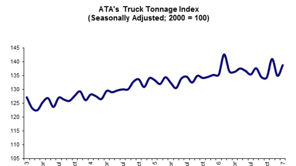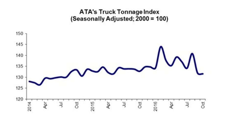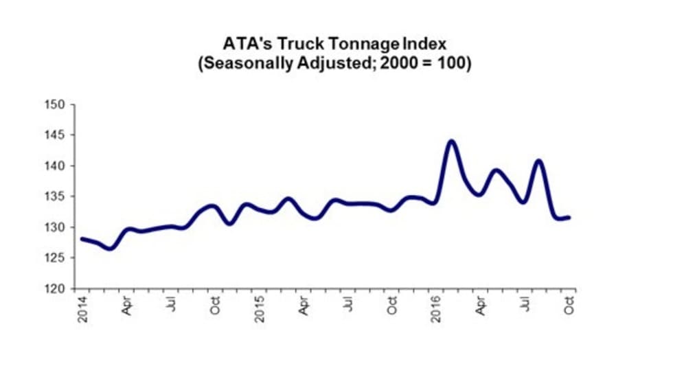 The American Trucking Associations’ advanced seasonally adjusted For-Hire Truck Tonnage Index rose 3.3% in October, following a 1.9% decline during September.