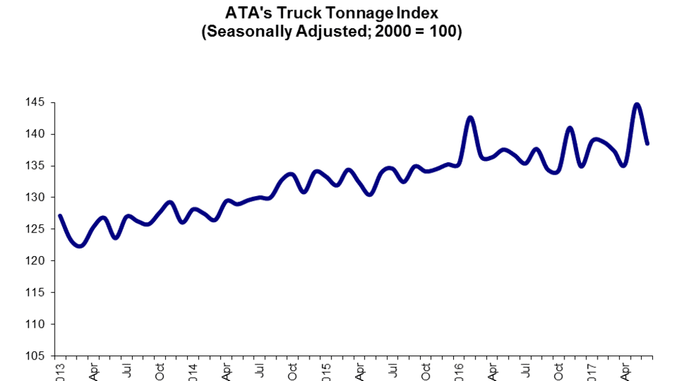 The American Trucking Associations’ advanced seasonally adjusted For-Hire Truck Tonnage Index fell 4.3% in June. That's in contrast to a 6.9% gain the month prior.