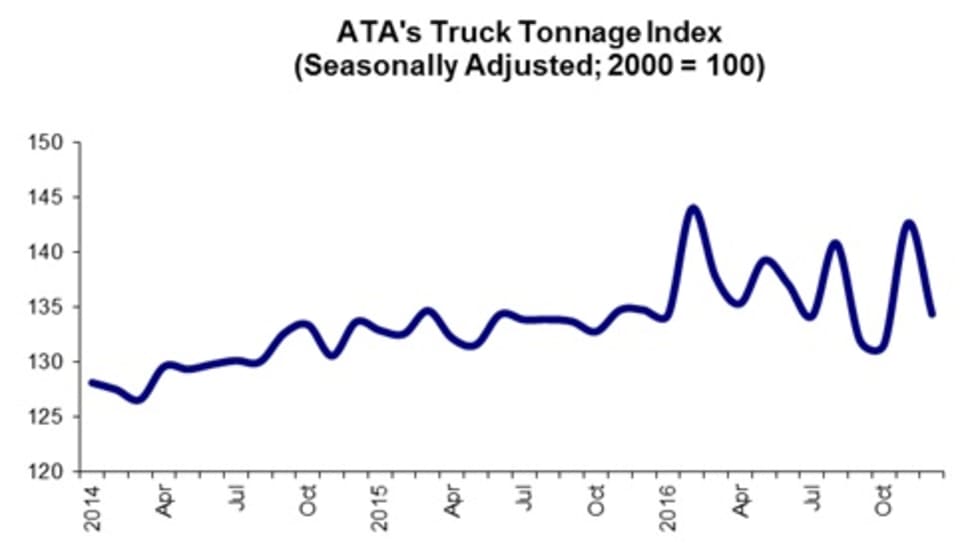 The American Trucking Associations advanced seasonally adjusted For-Hire Truck Tonnage Index fell 6.2% in December, losing ground after a strong showing in November.