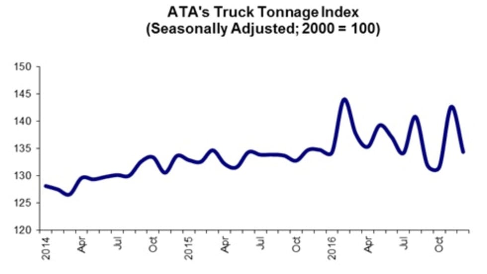 The American Trucking Associations’ advanced seasonally adjusted For-Hire Truck Tonnage Index rose 2.9% in January, offsetting some of the decline noted in December.