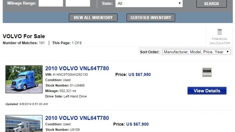 The new Volvo Premium Certified truck program inspects and reconditions used Volvo trucks for resale.