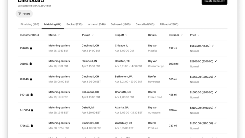Uber Freight Exchange: Spot aims to aggregate spot freight for motor carriers, starting with loads from hundreds of shippers in Uber Freight’s managed transportation business and brokerage.