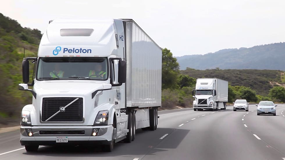 Peloton’s new Automated Following solution uses vehicle-to-vehicle technology to allow a single driver in a lead truck to control two platooning vehicles.