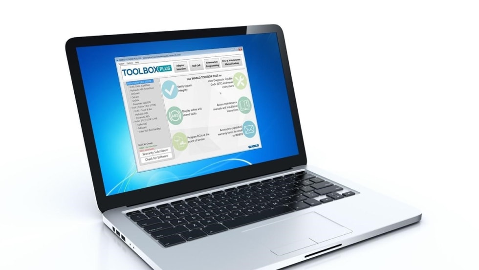 ZF's Commercial Vehicle Control Systems new Wabco Toolbox Plus, a PC-based advanced diagnostics software, accelerates vehicle and trailer diagnosis with a new “roll call” feature that automatically detects Wabco systems included on the vehicle.