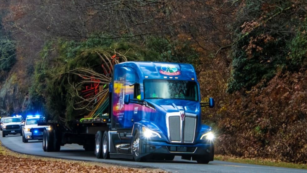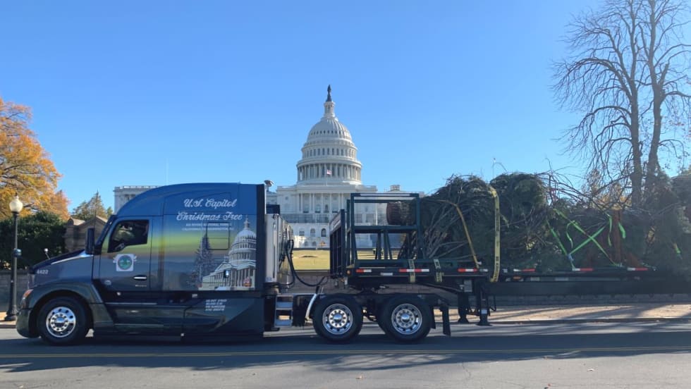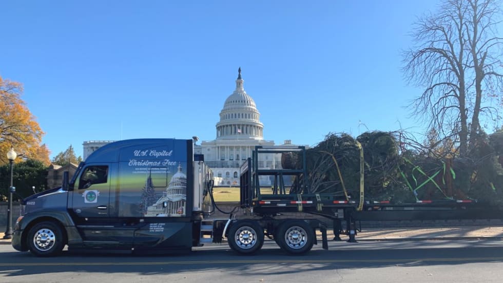 System Transport drivers enjoy an experience of a lifetime hauling the U.S. Capitol Christmas tree in a Kenworth T680 Next Gen.
