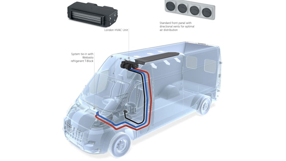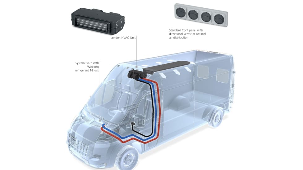 Webasto’s Air Top Evo 40 and 55 are air heaters designed for heating cargo spaces in medium-duty commercial vehicles to keep sensitive cargo from freezing or getting too cold.