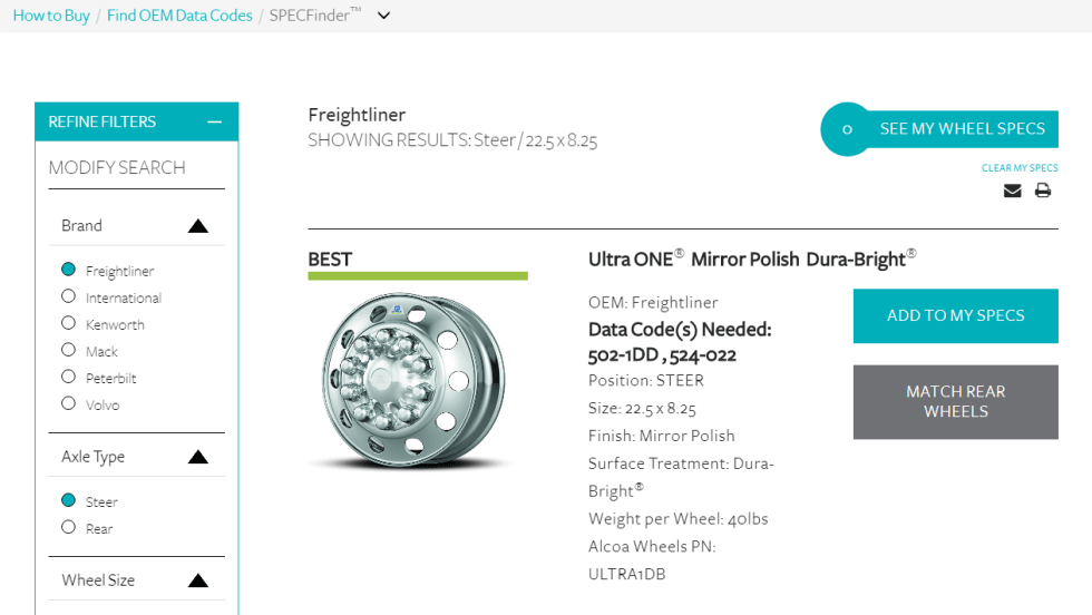 Arconic's SpecFinder online tool for Alcoa aluminum truck wheels is designed to streamline the lightweight, aluminum wheel-shopping process for fleets, OEMs, and owner-operators.