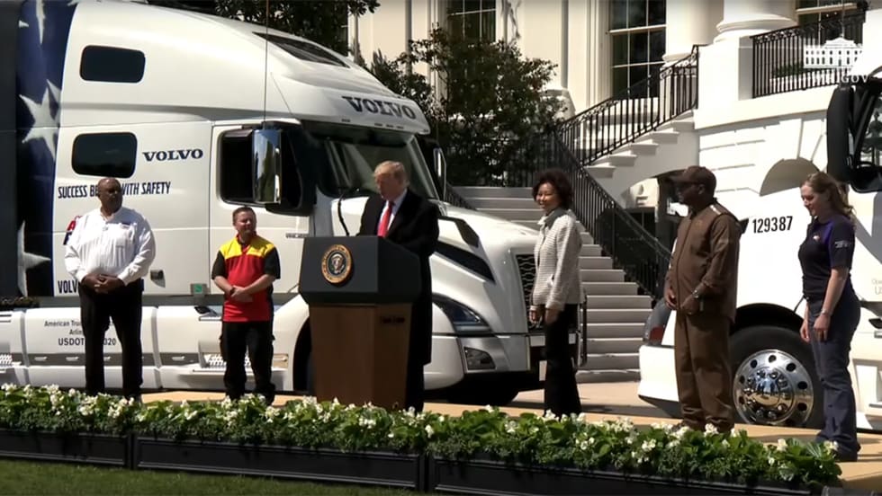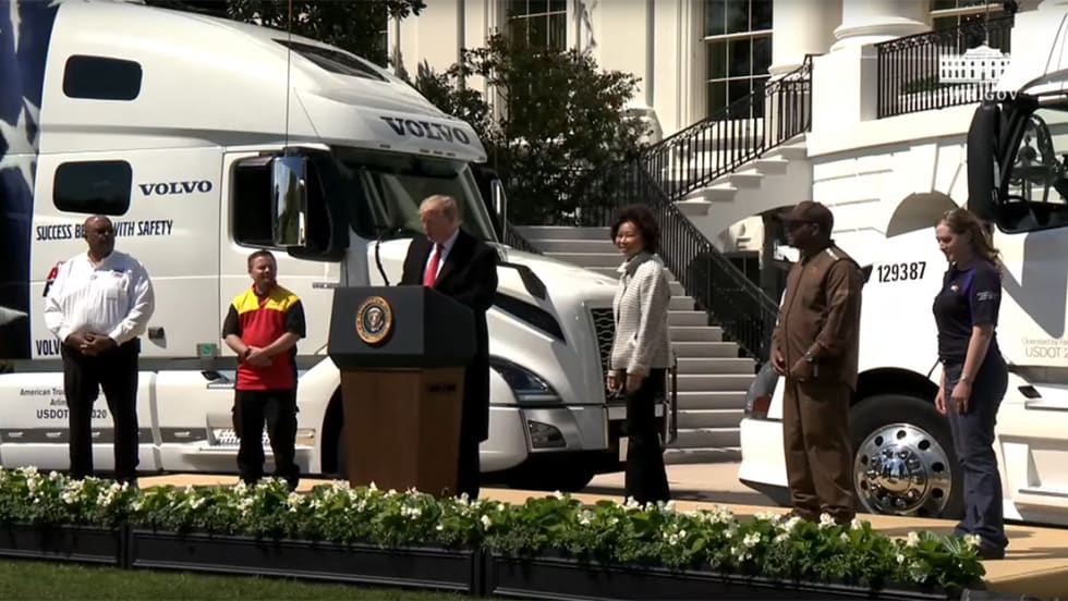At a White House event April 16, President Donald Trump thanked the truck drivers who are ensuring that essential goods make their way to their much-needed destinations, calling them the lifeblood of our economy.